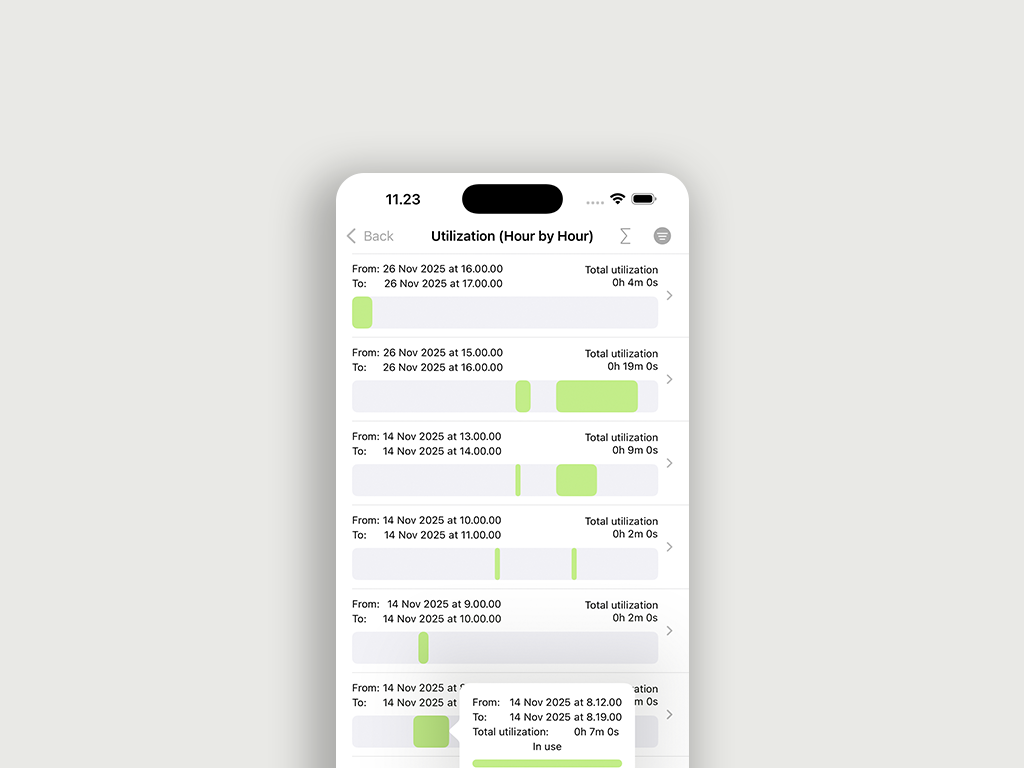 Track, monitor, and analyze the accurate running hours of your tools, attachments, or machinesRunning hours