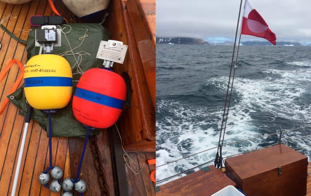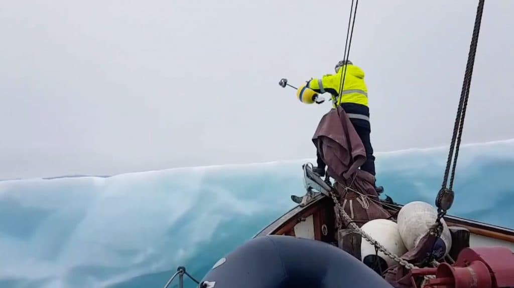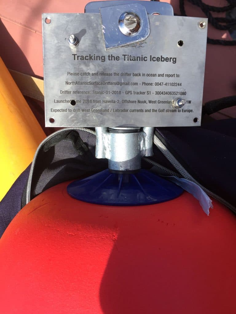 Terje’s purpose of the expedition, however, was to throw one buoy direct into the ocean, and place one on an iceberg with a satellite tracking device, both equipped to follow the buoys drift patterns the years to come. The yellow buoy he named Titanic, and the red buoy called Erik the Red.