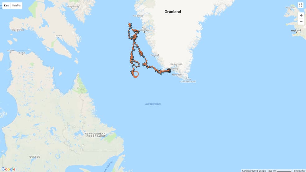 – “It is undoubtedly that the power of West Greenland coastal current goes north, and then weakens around 65N, North of Nuuk, again to returned south in the middle of the Labrador Sea, hopefully, to reach Newfoundland next year!” says Terje in November 2018, after the buoys have been drifting for 4 months.