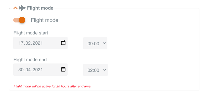 Note: For safety reasons, in case of any delays to the flight, your device will remain in flight mode for 20 hours after the end time you configured.